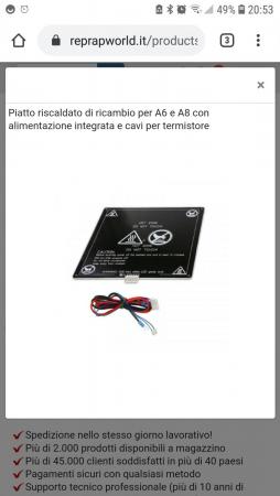 Finalmente sono riuscito a fare alcune stampe, è sono abbastanza soddisfatto. Il problema che l'attuale piatto , in fibra di vetro, dopo averlo alimentato ha emesso un odore sinistro, ed ora quando tento di scaldarlo, il mosfet non funziona, se stacco i collegamenti dell'alimentazione del piatto, il mosfet funziona regolarmente, suppongo che sia andato in corto. Quindi lo vorrei sostituire con quello della foto allegata, ma non ho capito se il termistore va saldato nei punti centrali è se ci vuole un termistore particolare oppure va bene uno classico. Al momento sto stampando su vetro con lacca a piatto freddo e funziona egregiamente. -