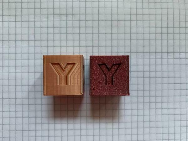 Buongiorno, ho un problema sul cubo XYZ. Ho artillery X1 con Bltouch Ho settato un nuovo filamento e ho fatto il ThinWallTest (files in allegato ThinWallTest_RC_01 e _02 COLORE CHIARO) con PrusaSlicer: layer0.2mm - ugello 0.4mm - filamento 1.74mm - Extrusion width 0.45mm - Extrusion multiplier 1 = risultato pareti 0.45mm Eseguito di conseguenza il cubo 20x20mm e il risultato, con valori secondo me accettabili, lo potete vedere nei files allegati (X_01 - Y_01 - Z_01) - COLORE CHIARO Poi ho iniziato a settare un nuovo filamento. Quindi ho eseguito il ThinWallTest (files in allegato ThinWallTest_RB_01 e _02), risultato leggermente sopra il 0.45mm impostato. COLORE ROSSO BRILLANTE layer0.2mm - ugello 0.4mm - filamento 1.75mm - Extrusion width 0.45mm - Extrusion multiplier 1 Poi ho stampato il cubo, sempre 20x20mm e non va per niente bene (allegati X_02 - Y_02 - Z_02). COLORE ROSSO BRILLANTE Altra cosa che ho notato, prima non avevo questo problema, lo potete vedere dagli allegati X_cubi - Y_cubi - Zcubi. La X e la Y sembrano leggermente inclinati verso sx guardando le foto. Inoltre il cubo + chiaro ha delle sorte di scie che vanno verso dx. I segni che il cubo chiaro ha sull'angolo di sx, li ho risolti con la retrazione, aumentando un po' la velocità. Le mie due domande sono: 1) Perché il cubo ROSSO BRILLANTE ha delle misure superiori a quello + chiaro, non avendo mai avuto problemi con altri filamenti? Ho settato gli step/mm sia per l'estrusore che per le xyz della stampante e andava tutto bene. L'unica cosa che ho modificato sono stati quelli dell'estrusore in quanto estrudeva, su 120mm di prova, "solo" 109.5mm. Dopo le stampe sono risultate sempre molto buone. 2) A cosa potrebbe essere dovuto l'inclinazione delle lettere X e Y? il file stl è perfetto. Non ha questa inclinazione. Grazie -