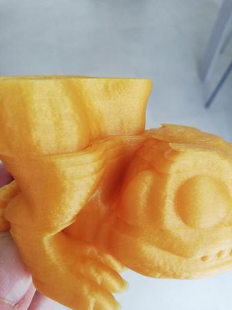 adesso ho provato a stampare un dinosauro scaricato da Cults3d.com, ma ho dovuto stoppare la stampa perche stava uscendo tutta a "gradini", ovvero durante la stampa ci sono stati svariati spostamenti sull'asse Y (sia in avanti che indietro) , alcuni spostamenti sono di decimi ma altri di parecchi mm.