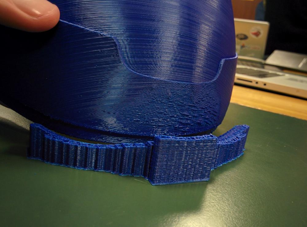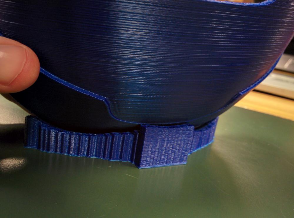 No cura. Di fatto fa i supporti a nido d'ape, disperdono bene il calore, poi inizia a fare la parte basse del pezzo, molto piccola e totalmente piena. Risultato, i primi 30 layer di parte piena non riescono a disperdere bene il calore, gonfiandosi immediatamente. L'ugello caldo, passandoci sopra di nuovo, li schiaccia a forza e da origine a questo terrificante risultato.