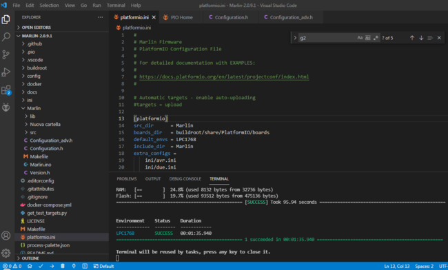 Compilazione Marlin 2.0.9.1 su platformio su Creality 4.2.7 e altre schede