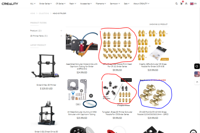 Se vai sul sito Creality trovi entrambi i modelli: Sono nominalmente per stampanti/estrusori differenti, ciò non cambia che l'attacco sia quasi sempre un M6 (idem E3D, Micro Swiss, Bigtreetech, ecc...). -