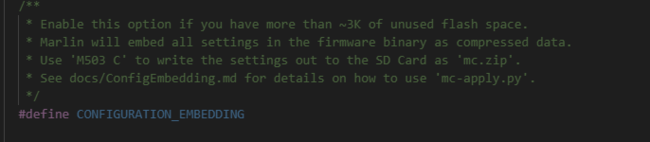 Il comando è M503 C, ma devi aver attivato la relativa opzione in Configuration_adv.h: Tutto sommato mi sembra poco utile visto che o tramite terminale/slicer o tramite OctoPrint il collegamento seriale alla stampante lo devi avere, e a quel punto copi l'output di M503 dal terminale e lo salvi in un file di testo a futura memoria.