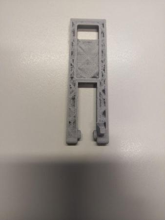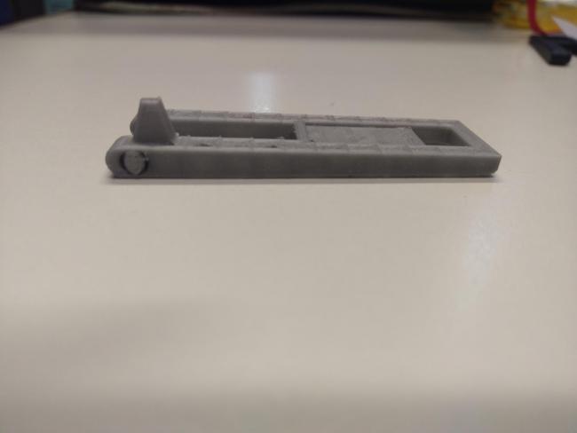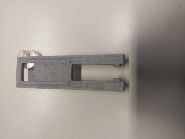 2. Riguardo alla stampa dell'oggetto in posizione verticale sono riuscito a portare a termine la stampa aumentando la dimensione dell brim alla base. Successivamente per dargli una maggiore resistenza ho provato a stamparlo in orizzontale in due modi: Modi di stampa vedi immagine con visione laterale. Il primo modo è il pezzo di colore nero, mentre il secondo è il pezzo di colore grigio. Come potrei migliorare la qualità in entrambi i pezzi stampati? Tenendo presente che il pezzo non ha una superficie dritta ma ha una leggera inclinazione, il pezzo ha una spessore di partenza di 6,5 Mm e uno spessore di arrivo di 4,5 Mm.