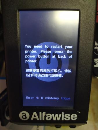 Buonasera a tutti, Volevo sapere se qualcuno di voi aveva avuto il mio stesso problema. Ho acquistato un alfawise u30 pro da più di un mese e non mi ha mai dato problemi. Recentemente quando avvio una stampa dopo un po' compare il messaggio di errore 9: B mintemp trigge Mi dici che devo spegnere e riavviare la stampante. Quando carico il pla termostato dell'ugello funziona correttamente idem il piatto. Qualcuno può aiutarmi ? Grazie