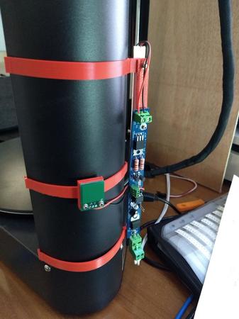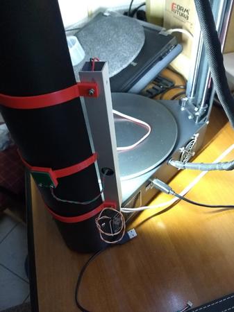 8. Forse il primo problema che ho notato quando ho cominciato a giocare con la stampante 3D (FLSun QQS-PRO) è stato il fatto che mancava l'illuminazione. Per vedere cosa sta stampando dovevo usare una torcia portatile! Certo l'illuminazione della stanza non è molto forte ma comunque il fatto di avere la testa di stampa giusto sopra il pezzo peggiora di molto la situazione. Dopo qualche veloce prova ho scelto un "led COB" (es. https://www.aliexpress.com/item/32800706677.html) da 200mm di lunghezza, 10mm di larghezza e funzionante a 12V con un consumo di 10W. La particolarità di questi led è di essere piuttosto luminosi e di scaldare abbastanza. Questa è la versione preliminare, in aria libera su suporti, ovviamente, stampati in PLA. L'elettronica permetterebbe anche di regolare l'intensità luminosa ma ho preferito mantenerla sempre al massimo ed usare un interruttore capacitivo (il quadrato verde sul supporto centrale). Come mi aspettavo scaldava parecchio quindi ho completato l'oggetto usando un profilo quadrato di alluminio da 20*20 che permette sia di dissipare molto bene il calore che di nascondere l'elettronica al suo interno (la avevo progettata proprio in funzione di un uso simile). Il vantaggio di usare tale led è datodal fatto che illumina molto bene l'intero volume. Ovviamente se a qualcuno interessa il modello dei supporti, sono a disposizione! Ciao Nicola