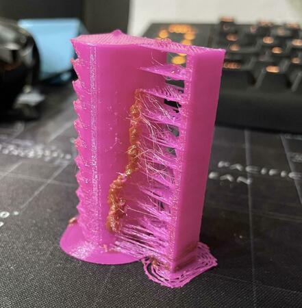 Avendo appunto sbagliato settaggi (Ho usato quelli per il PETG), quando ho staccato il pezzo (ormai freddo, erano passate circa 12 ore dalla fine della stampa) mi è rimasto appiccicato anche il rivestimento del piatto, o per lo meno, una parte di esso.
