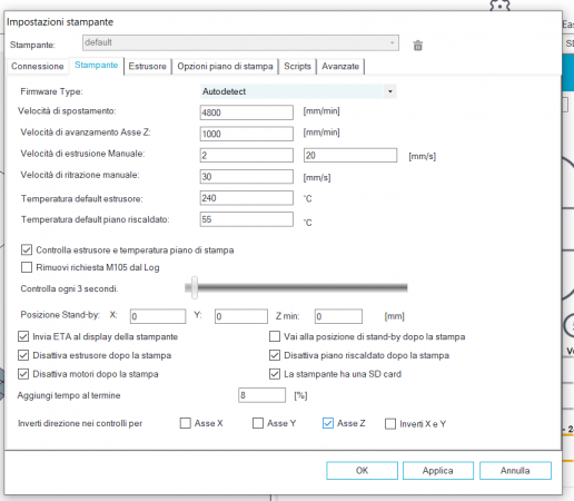 Problemi con Geeetech Prusa I3 pro BStefano Rossi ha risposto a Stefano Rossi nella discussione La mia prima stampante 3D Fatto. Quando premo home però l'estrusore comunque si alza di qualche centimetro. Non arriva in alto a sx ma si muove un po' in alto. Se ripremo home, si sposta di altri 2-3 cm verso l'alto. In entrambi i casi in cui inverto o non inverto l'asse, l'estrusore si alza di 2-3 cm. Qui lo screenshot della funzione che premo Per quanto riguarda la vita ho risolto stringendo la piattaforma heatbed al support con un altezza di circa 1,2-1,3cm