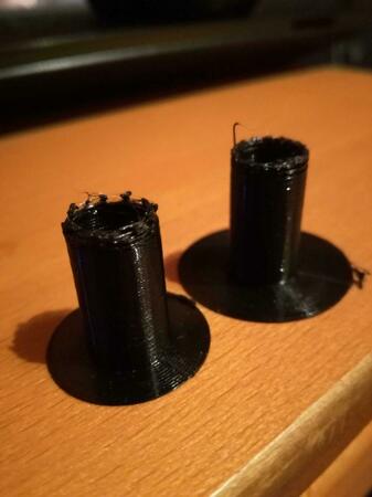 Filamento PET-G (la marca non ricordo), Temperatura 240°, Velocità di stampa 50 mm/s, Distanza ritrazione 3 mm, Velocità ritrazione 7 mm, Modalità Combing: tutto, Estrusore originale con ugello 0,4. Faccio notare che, dopo alcune prove, il problema si manifesta a diverse altezze.